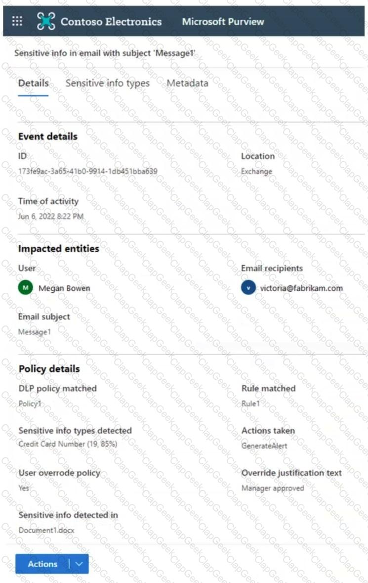 You receive the data loss prevention (DLP) alert shown in the following exhibit.