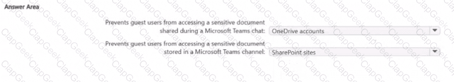 • Prevents guest users from accessing a sensitive document stored in a Microsoft Team? channel