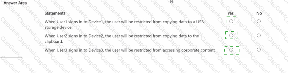 You have a Microsoft 36S ES subscription that contains a Windows 11 device named Device 1 and three users named User 1. User2. and User3.