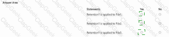 You have a Microsoft 365 subscription that has a retention label named Retention1. The subscription contains the files shown in the following table.