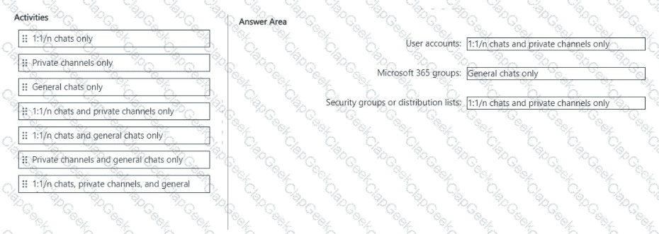You have a Microsoft 565 E5 tenant that uses Microsoft Teams and contains two users named User1 and User2. You create a data Joss prevention (DIP) policy that is applied to the Teams chat and channel messages location for User1 and User?