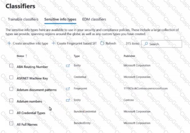 You have a Microsoft 36S subscription that contains the sensitive information types (SITs) shown in the following exhibit.