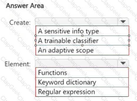 What should you create in the Microsoft Purview portal, and which type of element should you select? To answer, select the appropriate options in the answer area.