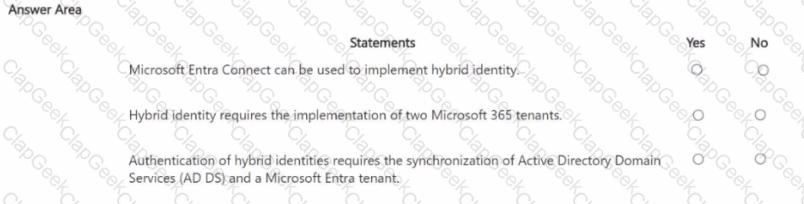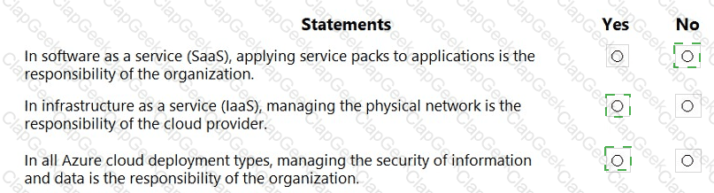 For each of the following statements, select Yes if the statement is true. Otherwise, select No.